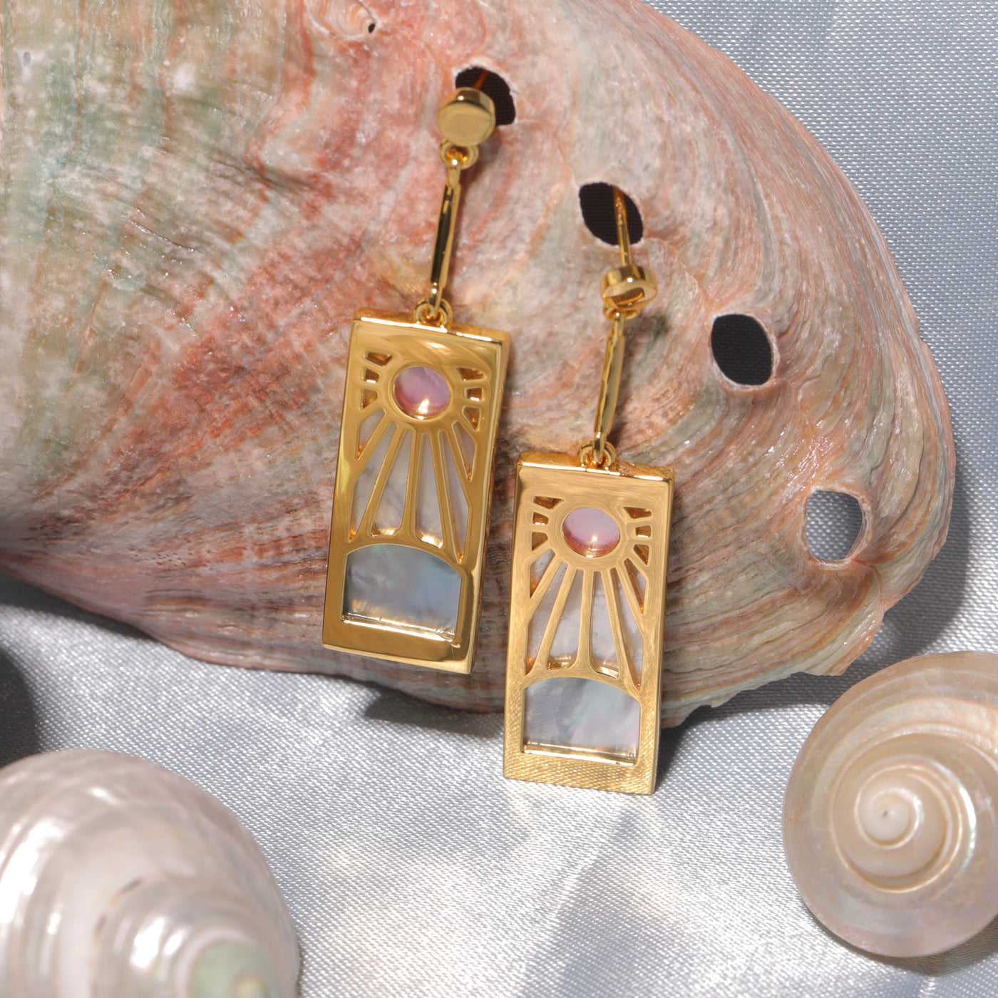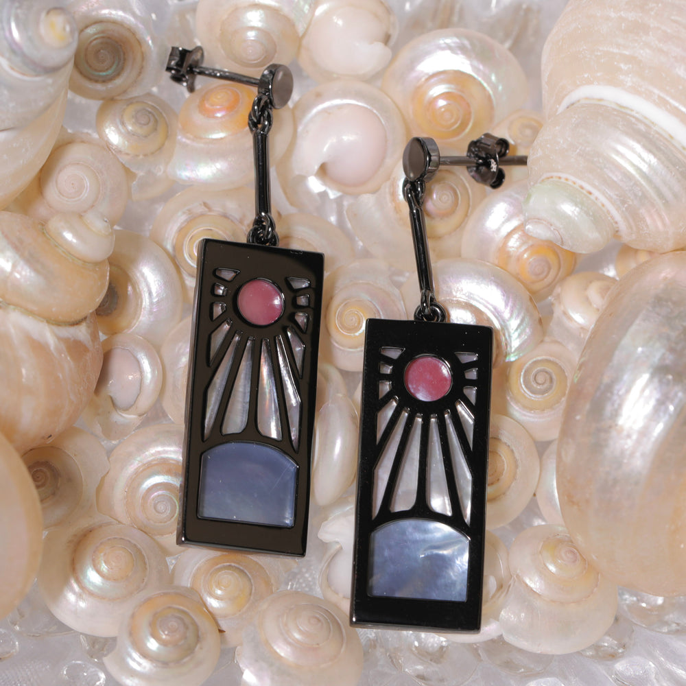 All 925 Sterling Silver and premium brass enveloping the shell. Shell patterns and shades may vary since we use dyed natural shell, every pair is completely unique.