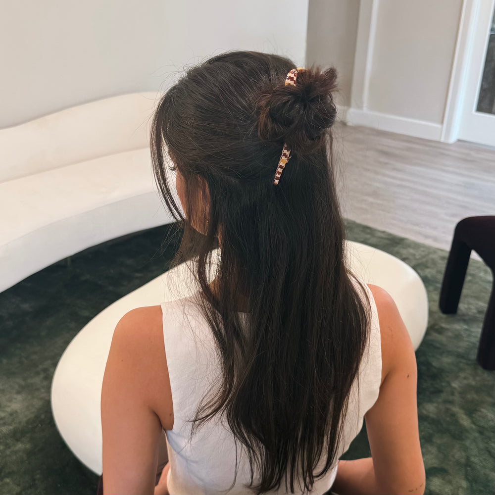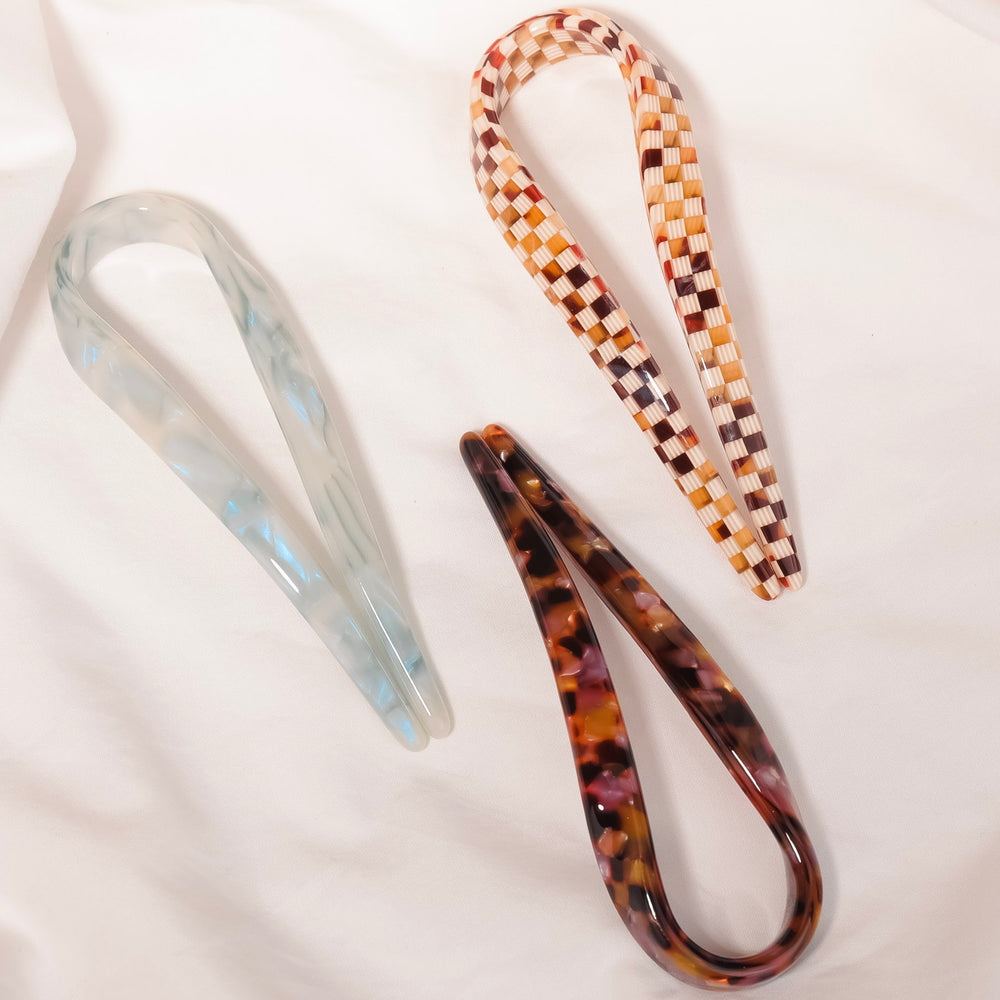 Crafted from high-quality acetate, our Sleek Hair Pin combines sleek elegance with durability. Unlike brittle plastic, acetate is flexible and more resistant to breaking while providing a snag-free hold. It’s also biodegradable, making it an eco-friendly choice. Stick it in a twist, or half up half down, and your outfit will be complete with any of our 3 shades.
