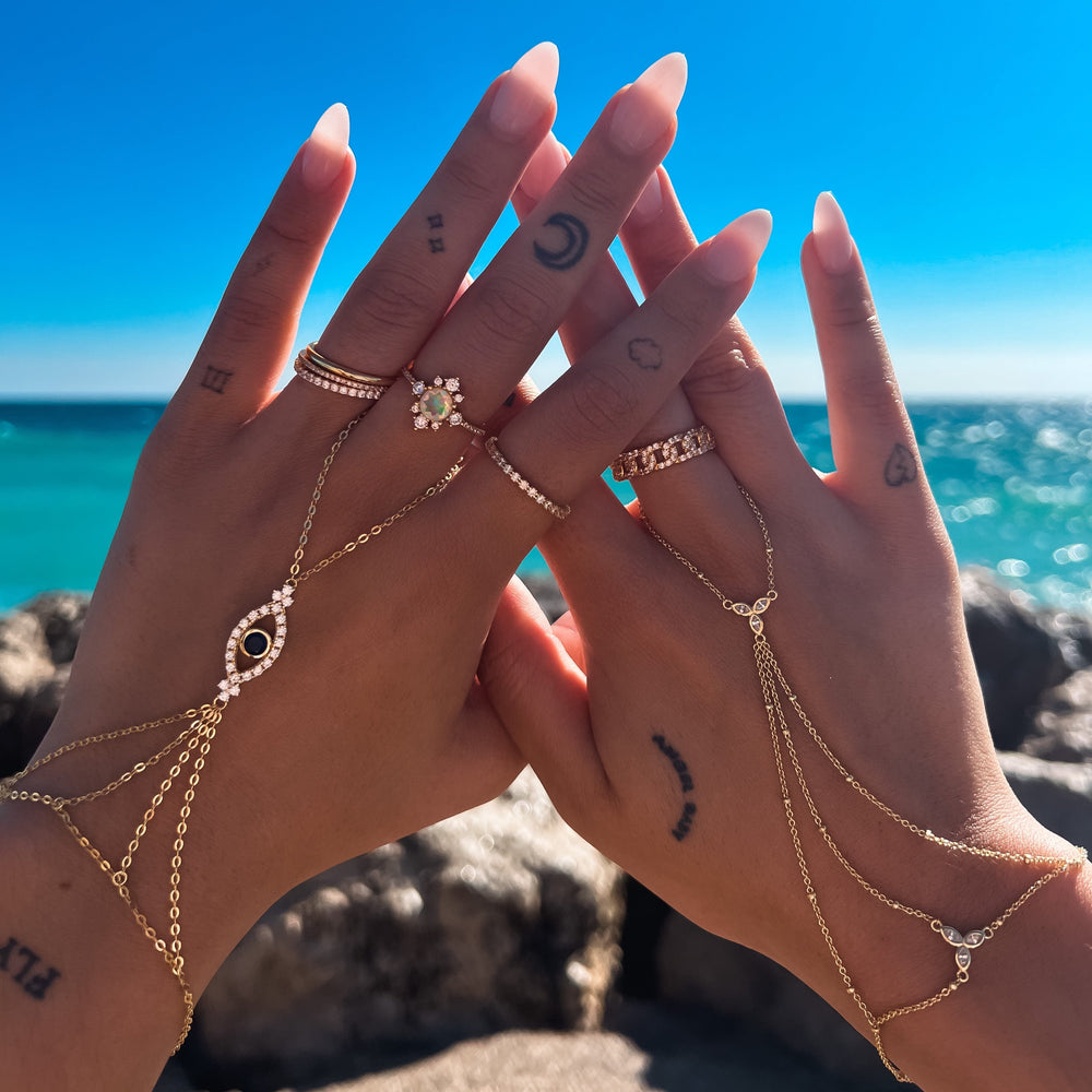 Inspired by our Third Eye Ring, this hand chain was designed to dress your hand in shine - an absolutely perfect addition to any outfit!