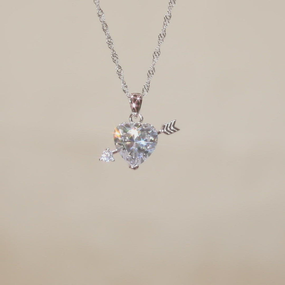 We replicated the diamond heart gifted to Mika and embodied it with the enchantment and wonder she executed her dance in. This Diamond Heart Necklace, turns heads when wearing this dazzling piece! Top quality heart shaped stone struck with cupid's arrow, with a small diamond on arrowhead.  Wear this necklace and feel as flawless and agile as the dance of Mika.