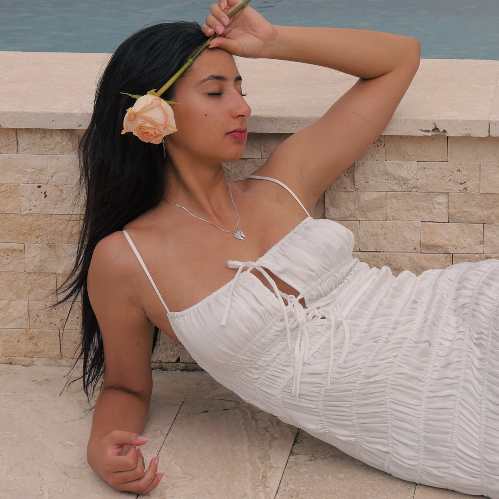 A trick we'd recommend is securing it from the front then adjust the chain until the clasp and wings are in their prefered place. A silver pair would go great with your Virgo Coin Necklace