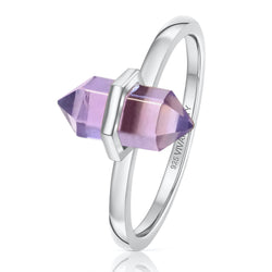 The memorable and symbolistic statue has been recreated into our Amethyst Kalei Ring. With double ended terminated points, this authentic crystal quartz stone sits on the point of the ring. The amethyst is known to strengthen faith, and shield you from negativity. The  breathtaking stone can be used for its healing properties or even just achieve that majestic and magical look. Crafted in 2.5 microns of 18KT Gold Vermeil.