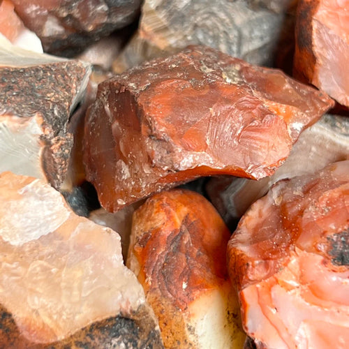 Carnelian, a frequently utilized semi-precious gemstone, is a brownish-red mineral and an orange-red type of chalcedony, which is a cryptocrystalline quartz mineral. It belongs to the chalcedony family and typically presents as a translucent to opaque quartz variation, displaying hues of red, orange, brown, pink, and various shades in between. The color spectrum of carnelian varies, encompassing pale orange to an intense, almost-black coloration, contingent on its mineral composition.