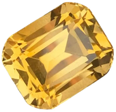 A gemstone with a yellow-orange hue, displaying shades from a pale orange to a rich amber. The transparency of our citrine gemstones is easily discernible to the naked eye. Exceptional craftsmanship is essential to shape citrine into custom, non-traditional forms like the emerald cut.
